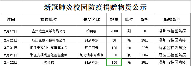新冠肺炎校园防疫物资捐赠公示(1)