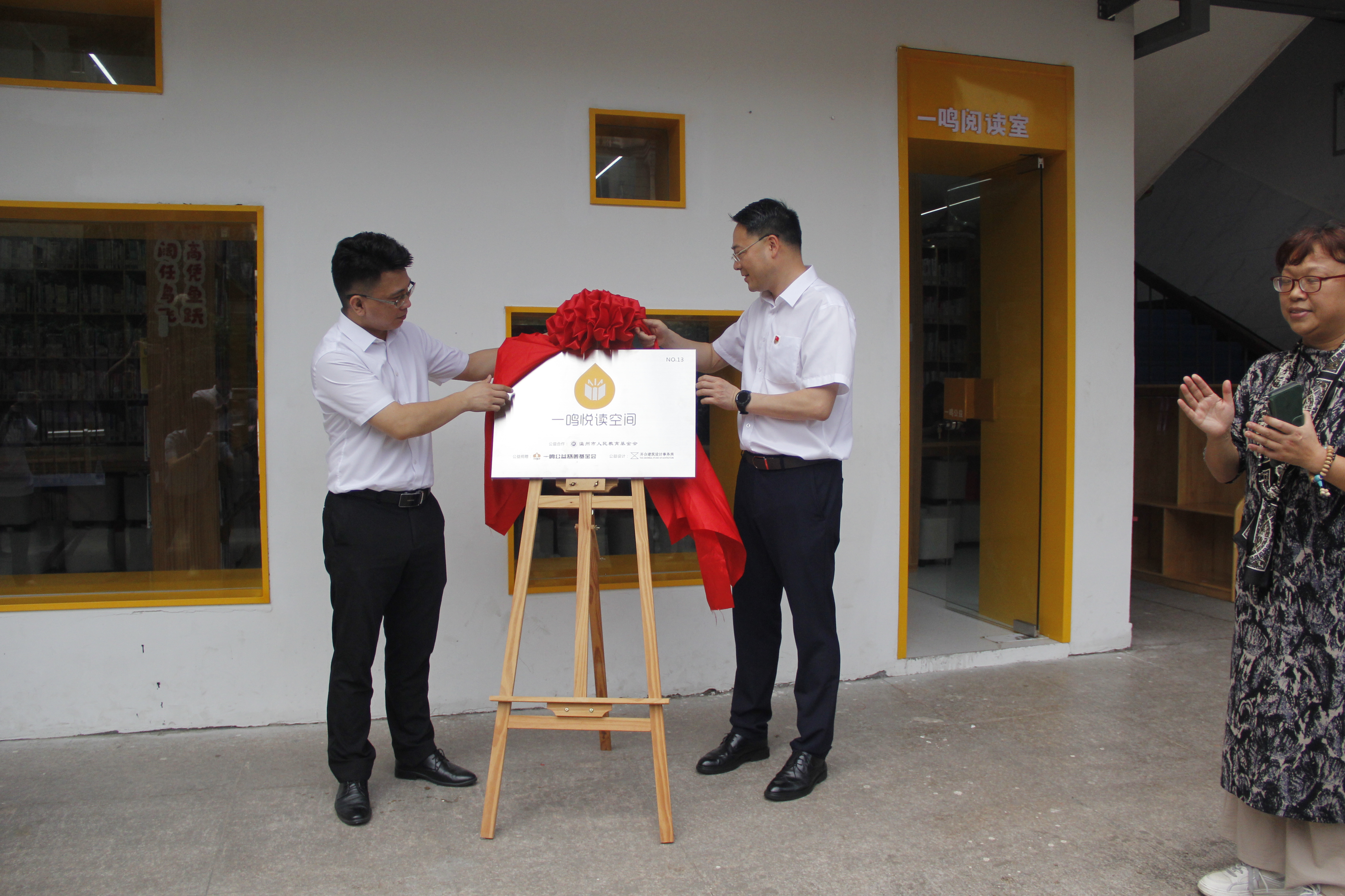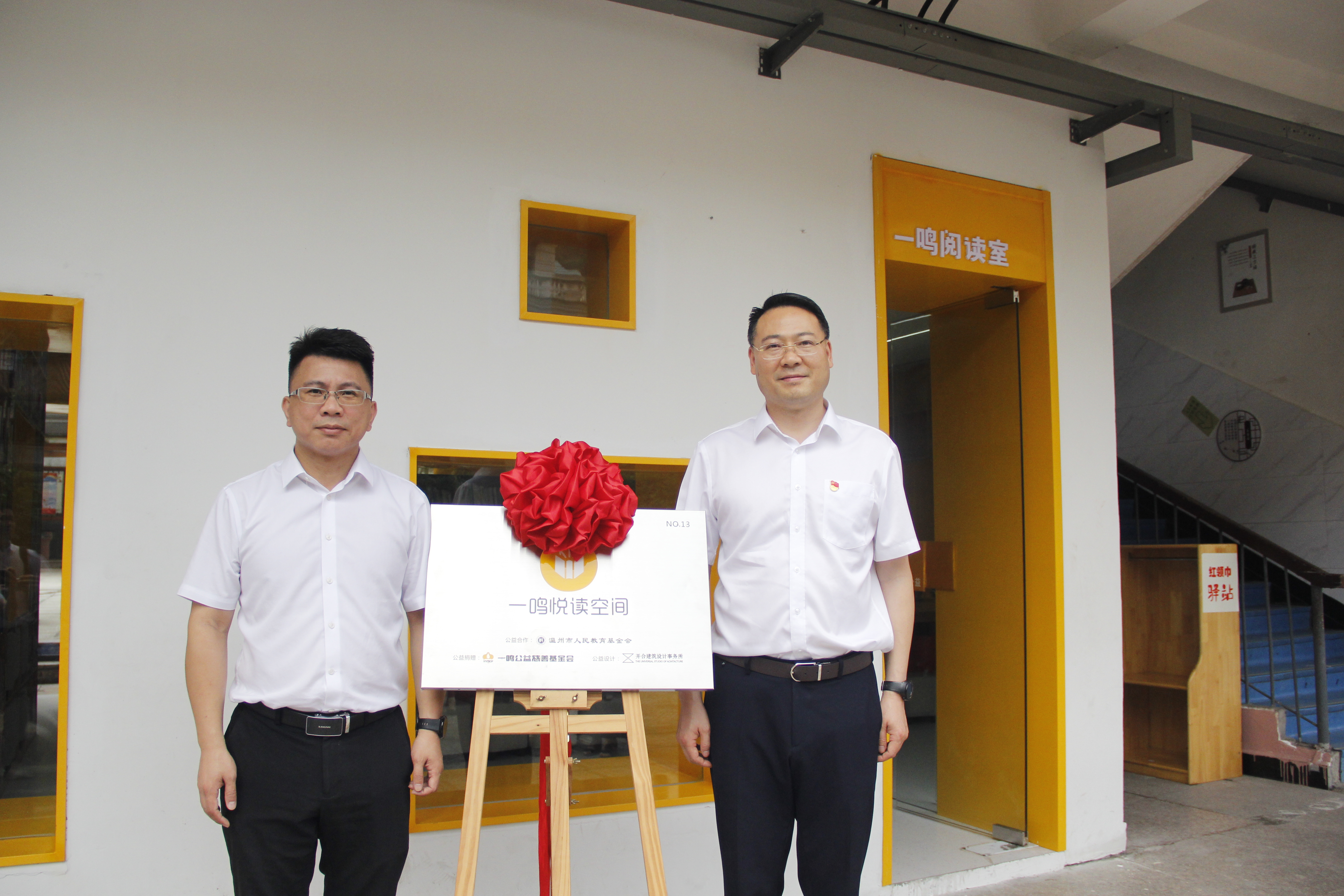6月25日上午,温州市人民教育基金和温州一鸣公益慈善基金会在文成县周南小学为该校阅读室举行揭牌仪式。温州市教育局人事处处长刘添梁、温州市教育工会主席徐俊、工会副主席黄邦用,温州市人民教育基金会秘书长赵坚琳、副秘书长张海坚,温州一鸣公益慈善基金会秘书长薛蕾蕾、理事吴孝松,以及学校教师职工出席仪式。