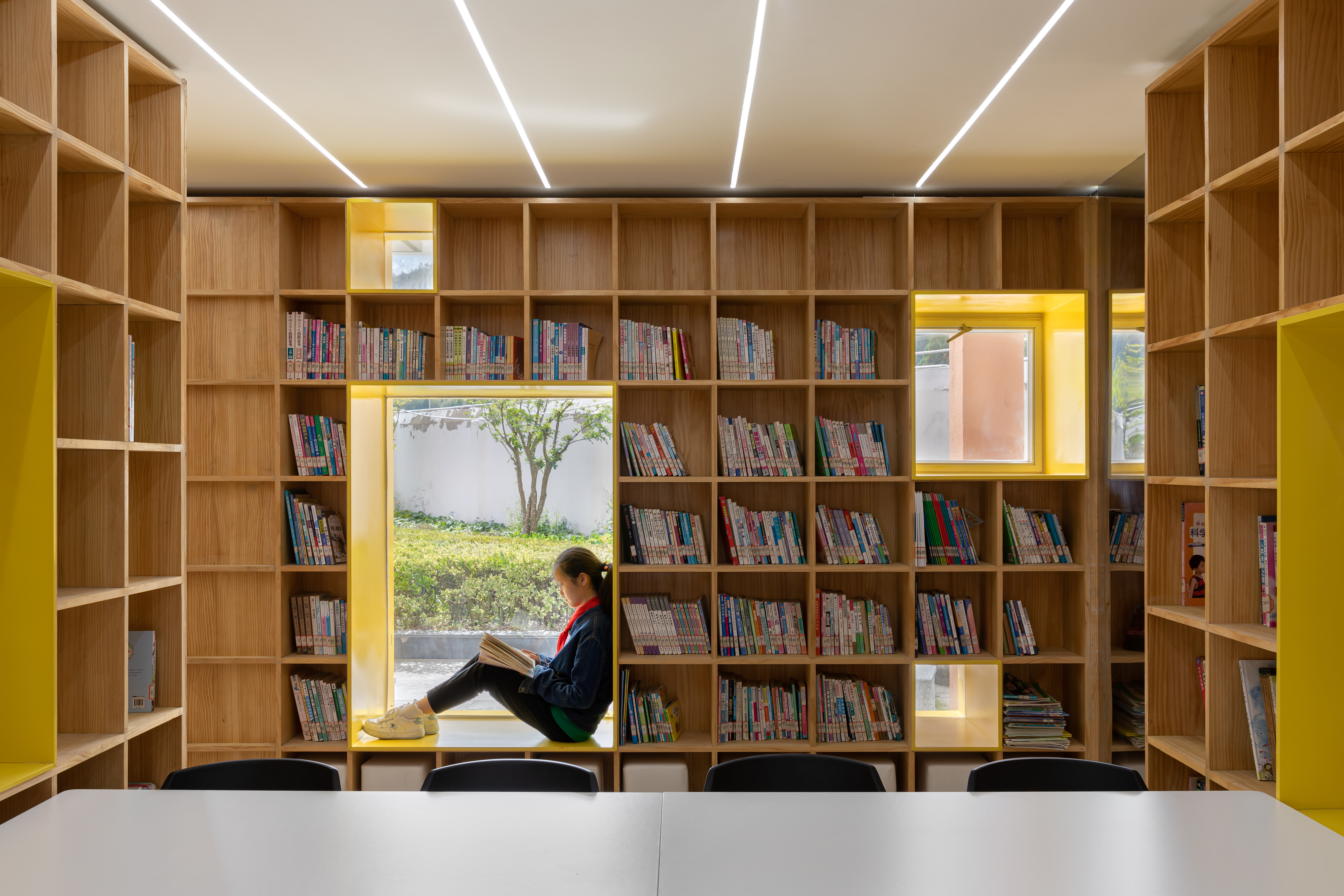 “我好喜欢这个阅读室,现在一有空我就会和同学来这里看书。”周南小学的学生兴奋地说道。阅读室里,错落有致的书柜和高低错落的照明灯箱,营造了一座路径蜿蜒的“书山”,孩子们好奇的探索着这个崭新的阅读室。