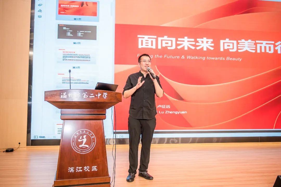 近日,由温州市教育局和温州市人民教育基金会主办的“艺术创新与美育发展”温州教育公益讲座在温州市第二中学滨江校区举行。市教育局党委委员、副局长倪彤出席活动并致辞。