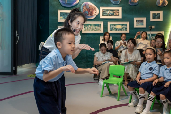 现场,赵坚琳介绍了温州市人民教育基金会的工作情况。自今年2月份起,基金会依托瓯越名校(园)长培育专项基金举办了多场瓯越名校(园)长研修专场。本次研修联合中央美院“润物无声”绘本展及师生绘本创作展,旨在让园长们从中看见美育的价值与力量,助推温州幼教发展。温一幼陈思思老师用一堂戏剧活动展示课,巧妙地把绘本情境与戏剧结合起来,引导孩子们在活动中感受艺术之美。园长姜伟带来了她的课程思考,全面细致地分享了温一幼“和戏”课程的架构与实施成效,凸显了美育的价值。副园长叶炜炜从项目化教学入手,开启了一场教学研讨沙龙,与大家共同感受学教方式变革下儿童、教师、管理者三种视角的智慧碰撞。